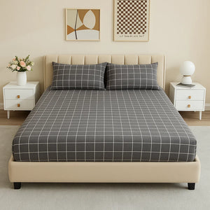 ملاية سرير عالية الجودة مصنوعة من قماش ناعم ومتين بملمس فاخر. تتميز بحواف مرنة تُثبّت المرتبة بإحكام، مما يمنع الانزلاق ويحافظ على مظهرها الأنيق. مثالية للاستخدام اليومي، تُضفي لمسة عصرية وأنيقة على غرفة نومك.